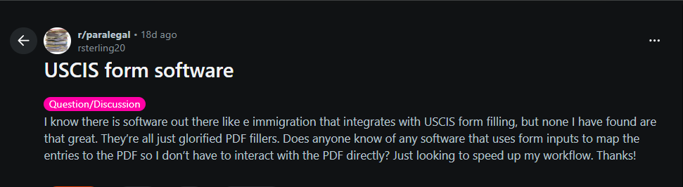 Talk to any immigration lawyer and you’ll hear the same complaints. The software they rely on every day is overloaded with features they never use, missing the ones they actually need, and wrapped in an interface that looks like it was designed in a previous decade. And despite all that, it’s still expensive.